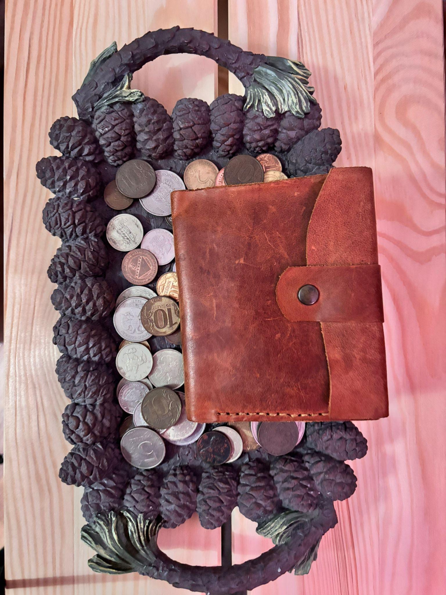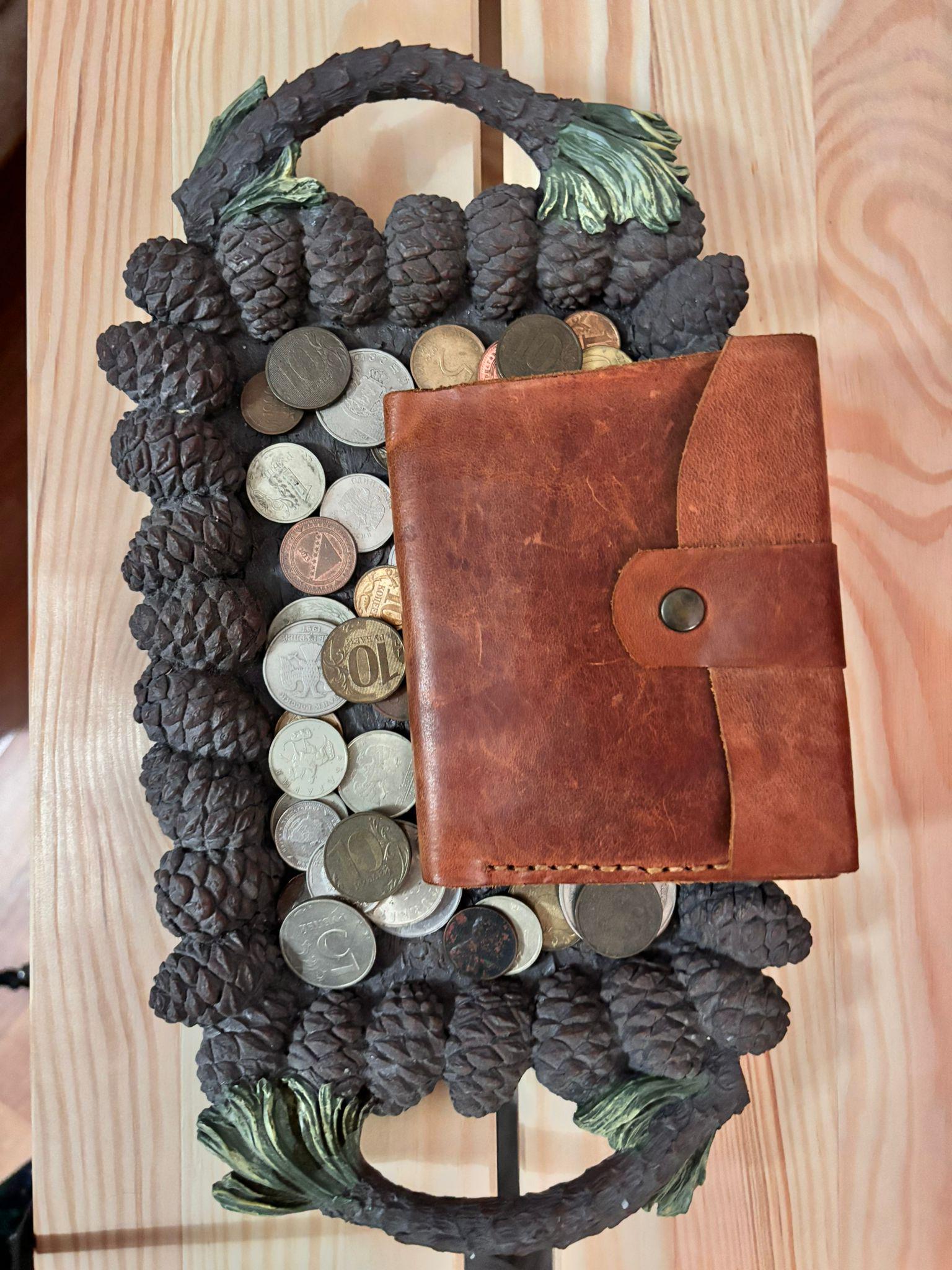 A minimalist handmade leather wallet crafted from genuine leather.